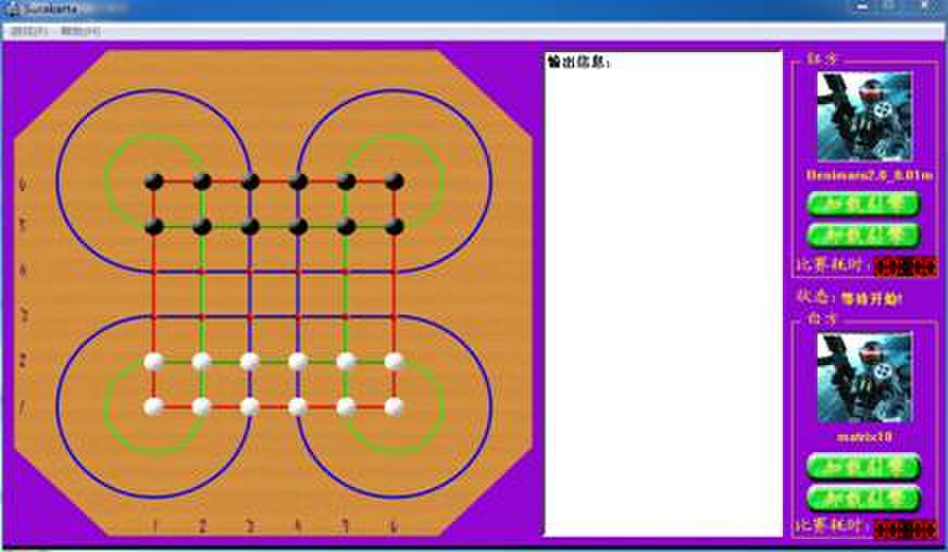 Ø 成果简介:本项目是基于windows系统的苏拉卡尔塔智能对弈系统,拥有自主学习、决策智能训练的出众特点,同时具有人机对弈,机器对弈等基本功能。本项目由学生自主开发并且参加2011年全国第五届大学生计算机博弈大赛获得全国一等奖(冠军)。
