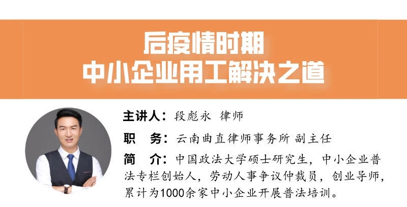 此次曲直中小企业法律事务部举办的《后后疫情时期中小企业用工解决之道》线上直播课程,由曲直中小企业法律事务所副主任段彪永律师围绕劳动关系用工再认识、劳务派遣解决财务障碍、业务外包节省用工成本、员工共享激活闲置劳力、合作合股共创企业未来、课后答凝+福利为主要内容进行线上直播,探讨和解决中小企业复工后用工问题。