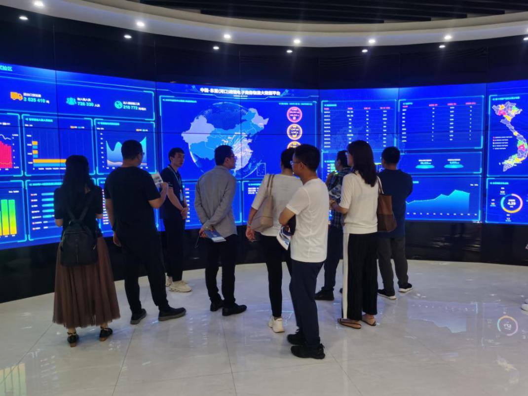 (考察参观在中国-东盟(河口)跨境电商物流园大数据中心)